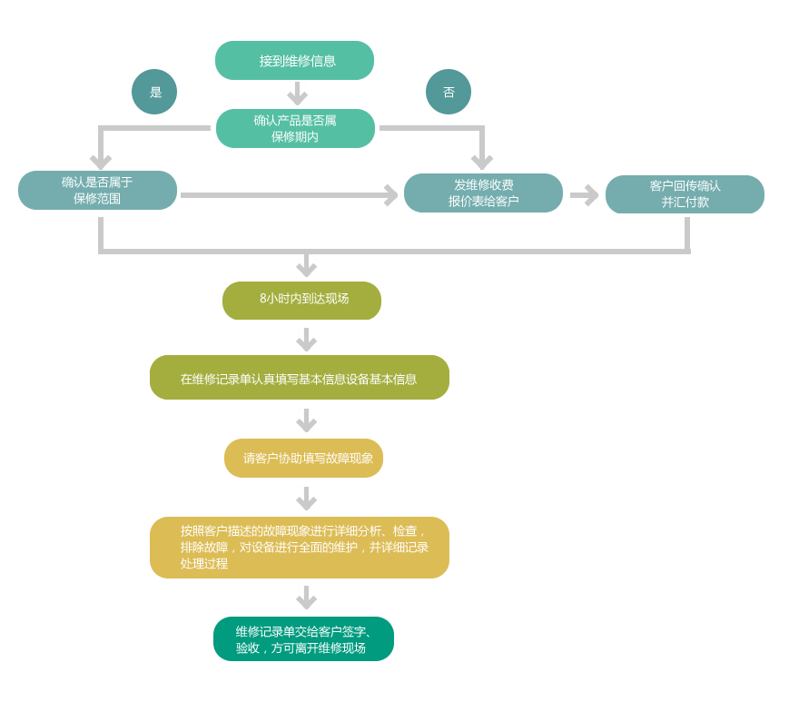 4. 售后服務響應時間8小時,接到用戶報修電話,售后工程師24小時內(nèi)有明確答復或到達設備現(xiàn)場。故障不排除,維修人員不撤離;